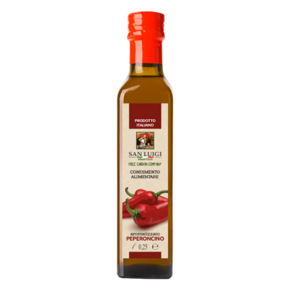 Das Olio Aromatizzato Peperoncino vom Frantoio San Luigi ist ein hochwertiges, aromatisiertes Olivenöl extra vergine EVO, das die fruchtigen Noten des toskanischen Olivenöls auf harmonische Weise mit der angenehmen Schärfe und dem intensiven Aroma von Chili verbindet. Es ist eine ausgezeichnete Wahl für alle, die ihren Gerichten eine pikante und geschmackvolle Note verleihen möchten und Wert auf die Qualität und die Produktionsweise eines renommierten toskanischen Familienbetriebs legen.