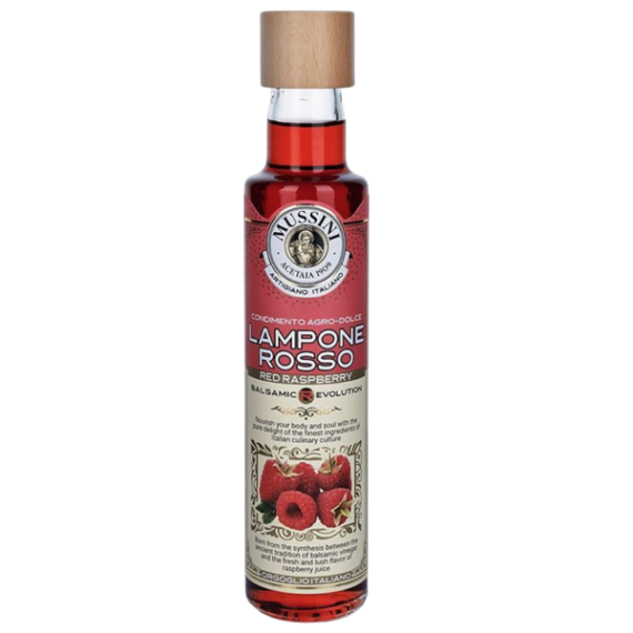 Der "Condimento Revolution Himbeere" von Acetaia Mussini aus der Emilia-Romagna ist ein spezialisiertes Balsamico-Würzmittel, ähnlich wie die Mango-Variante, aber eben mit Himbeergeschmack.