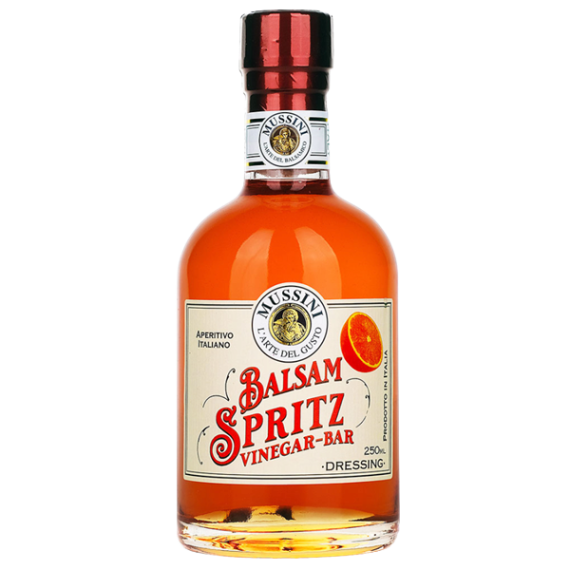 Ein Balsamico-Würzmittel auf der Basis von gekochtem Most aus weissen Trauben und Weinessig, aromatisiert mit dem Geschmack von Spritz - dem berühmtesten italienischen Aperitif. Dieses Produkt - mit seiner intensiven orangefarbenen Farbe und dem starken Orangengeschmack - eignet sich perfekt für Cocktails, sowohl alkoholisch als auch alkoholfrei, aber auch zum Würzen von besonders schmackhaften Gerichten, wie griechischem Salat oder Entenbrust.