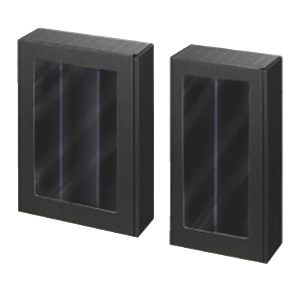 Die Geschenkschachtel aus offener Welle in rot mit Fenster gibt einen Einblick auf das Geschenk. Die transparente Folie bietet Schutz für den Inhalt. Die Artikel in schwarz sind ohne offene Welle.