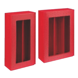 La confezione regalo a onda aperta in rosso con una finestra lascia intravedere il regalo. La pellicola trasparente fornisce protezione per il contenuto. Gli articoli in nero sono senza asta aperta.