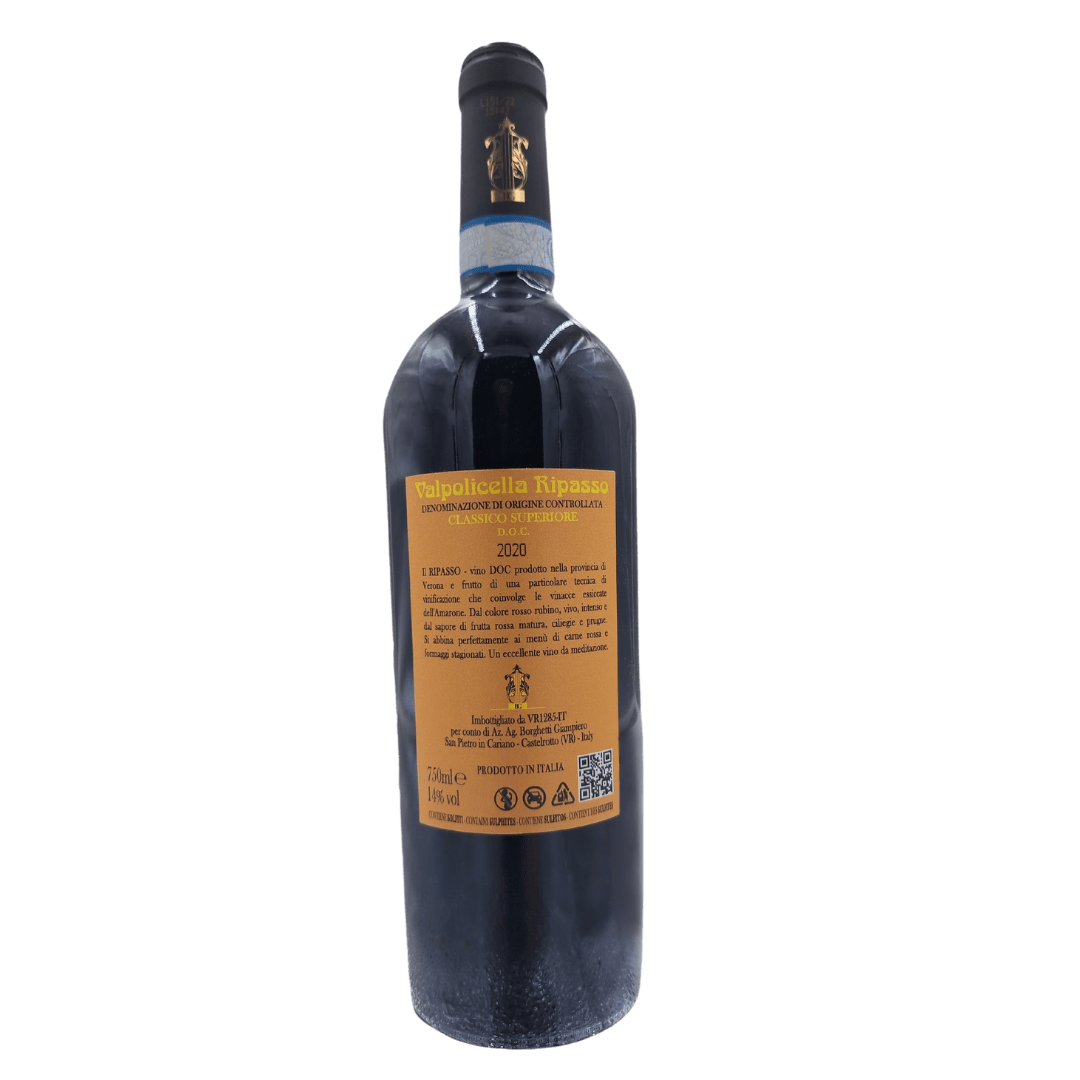 Produktion: Ripasso ist ein traditionelles Valpolicella-Verfahren, bei dem Valpolicella Classico-Wein auf dem vergorenen Trester von Amarone oder Recioto reift. Dieses Verfahren verleiht dem Wein mehr Struktur, Komplexität und aromatischen Reichtum. Der Wein wird hauptsächlich aus einheimischen Valpolicella-Trauben wie Corvina, Corvinone und Rondinella hergestellt. Die Gärung erfolgt in Edelstahltanks bei kontrollierter Temperatur. Der Ausbau erfolgt in Holzfässern, die dazu beitragen, dem Wein mehr Komplexität und Weichheit zu verleihen.